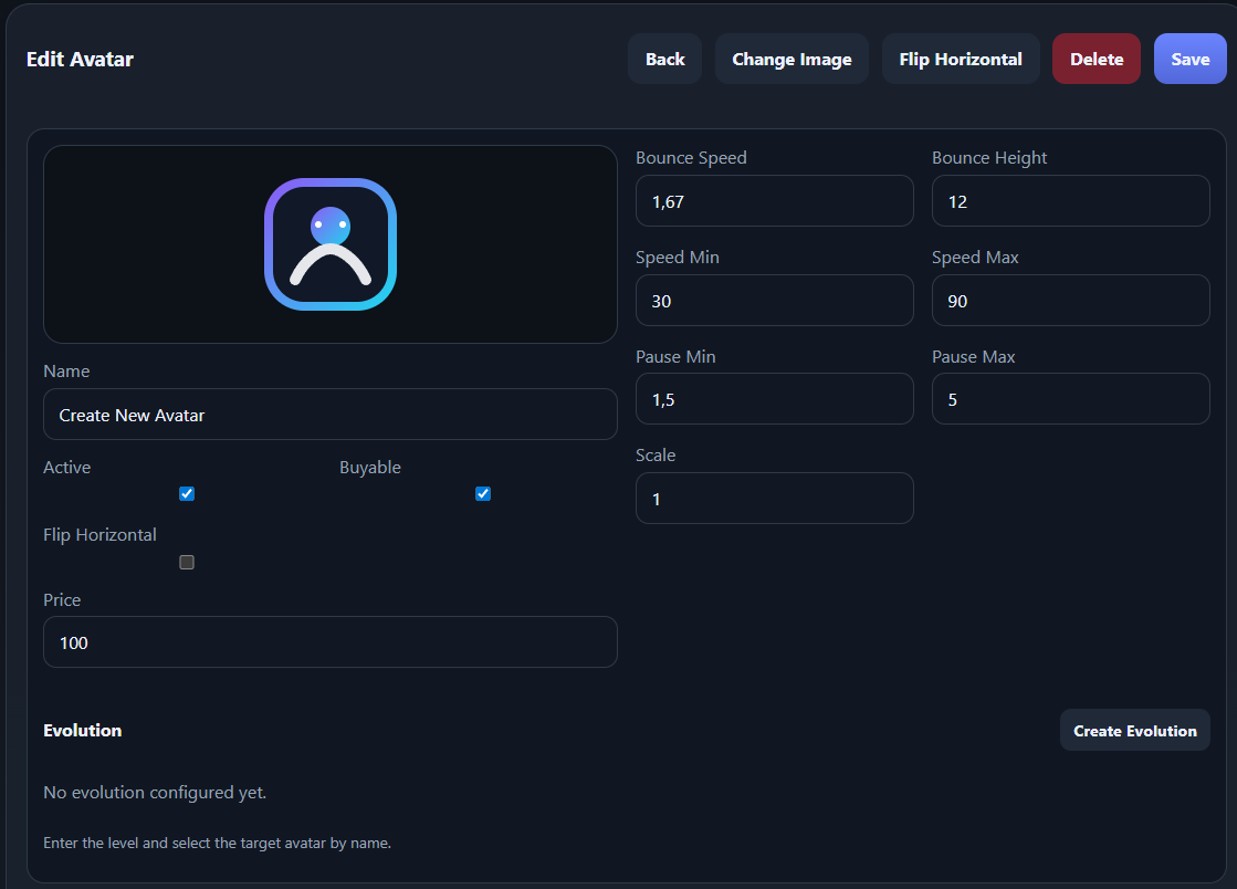 - Leveling system (XP per avatar)